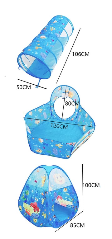 Tienda infantil con túnel y cercado - Mundo marino