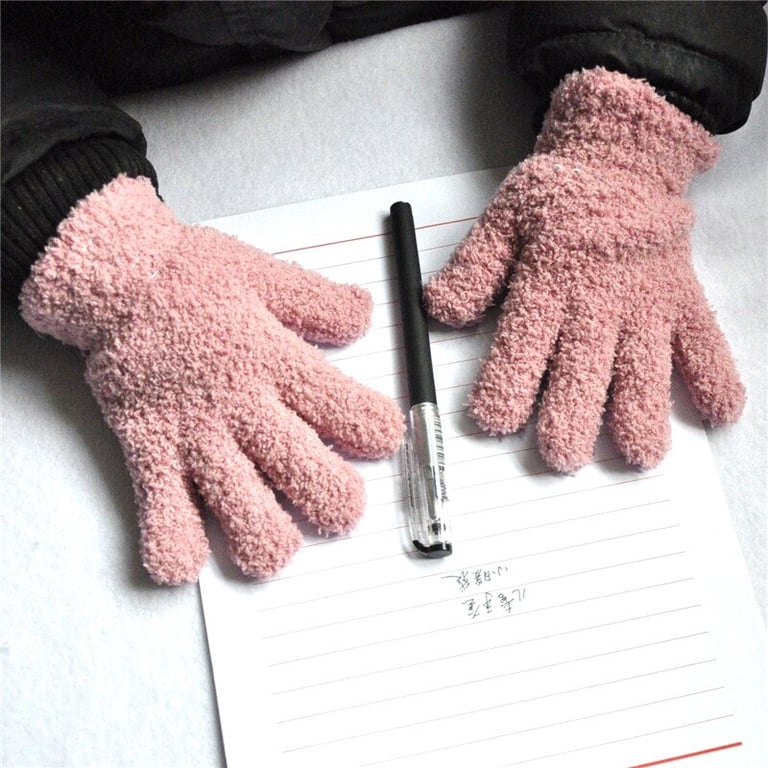 Guantes de dedo para niños en un solo color, hechos de un material suave y peludo.