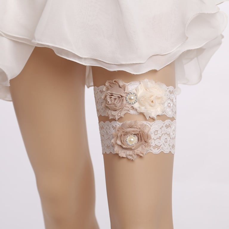 Medias de encaje para bodas con decoraciones florales