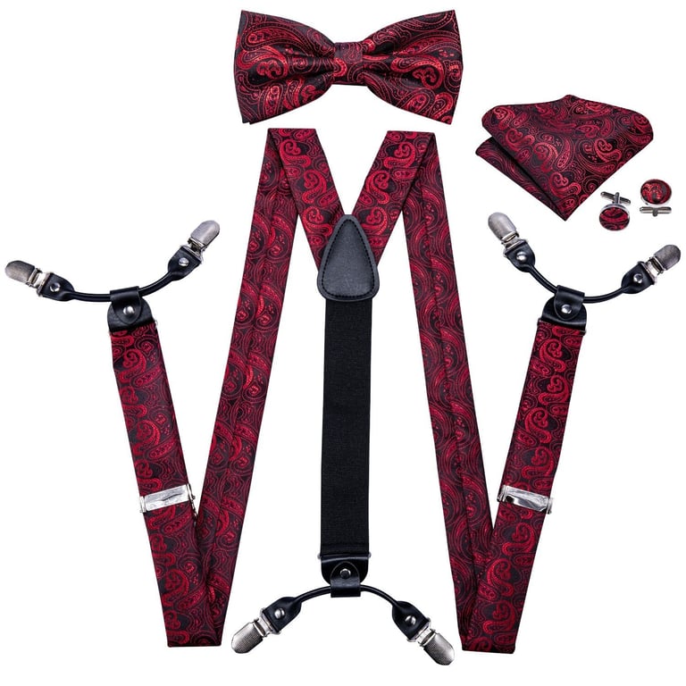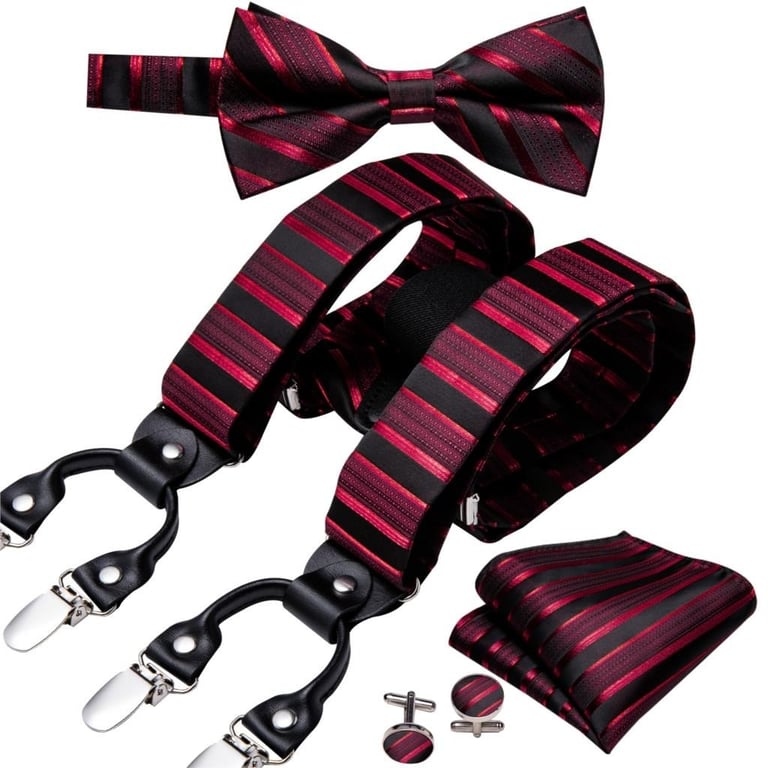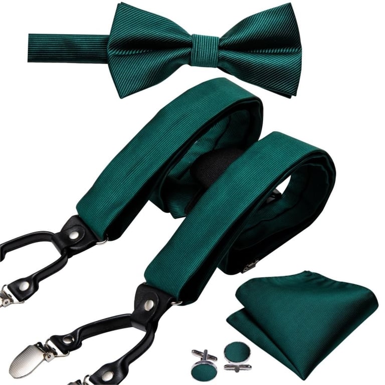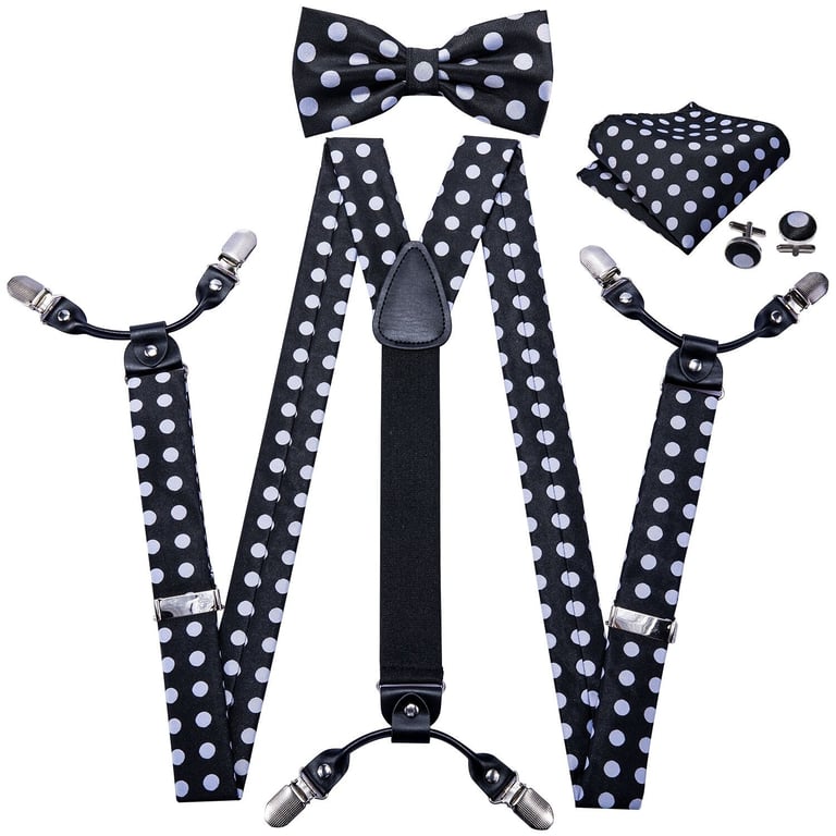 Contenido del paquete: 1x tirantes, 1x pajarita, 1x pañuelo, 2x botón de puño