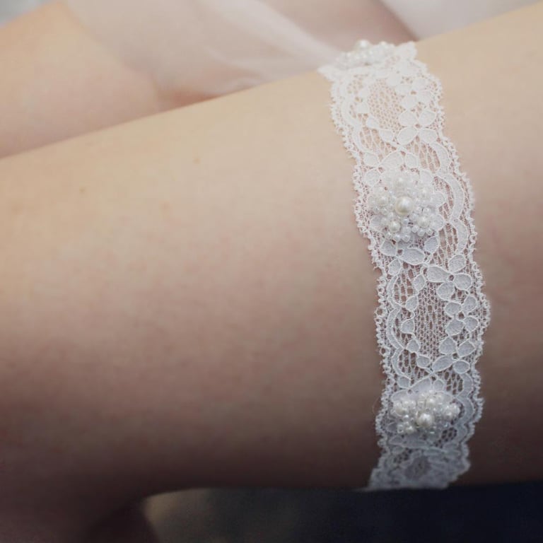 Ligadura de encaje para bodas con un decorado romántico de perlas