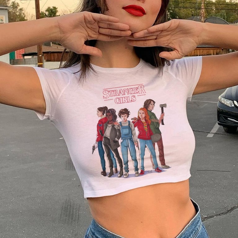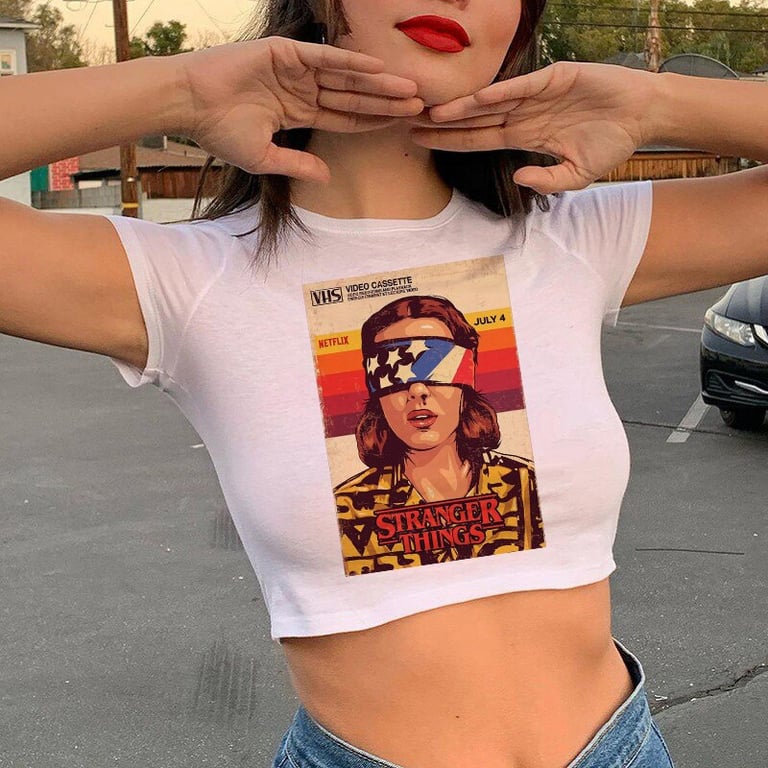 • Etiquetas: camiseta, top corto, top corto de mujer, top corto con estampado, Stranger Things, serie, netflix,