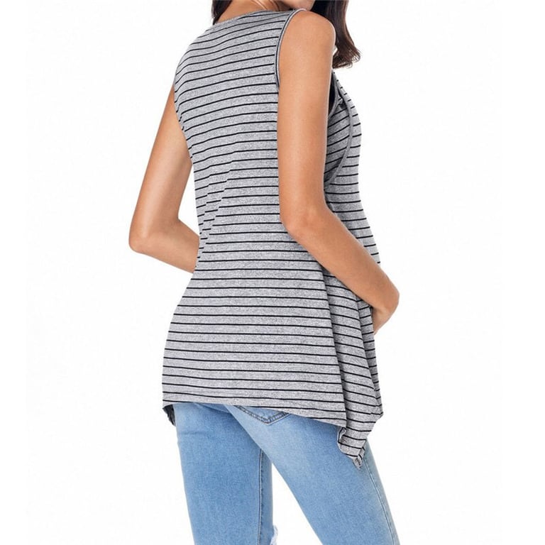 Top de embarazo sin mangas para mujer. Corte suelto y cómodo con tirantes anchos y escote redondo. Patrón a rayas.