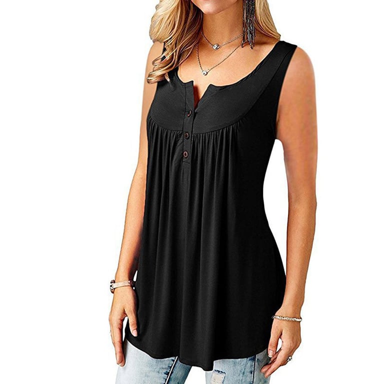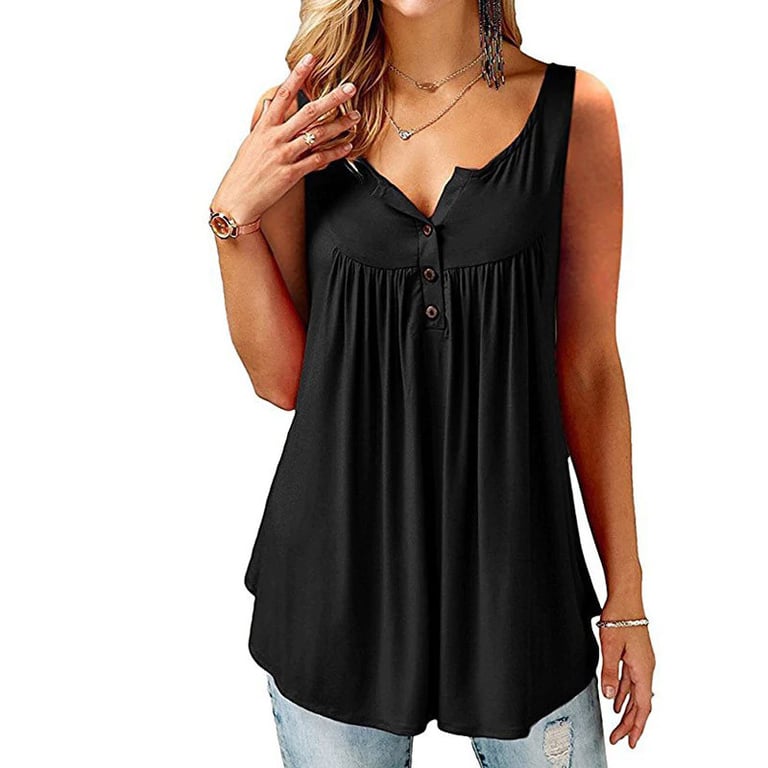 Top de mujer sin mangas. Tirantes anchos y escote con botones. Corte suelto. Disponible en varias opciones de color.