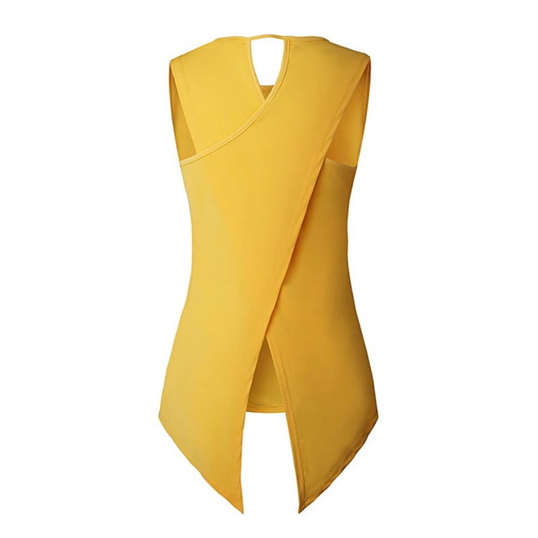 Top de mujer sin mangas. Corte asimétrico suelto con escote redondo y abertura en la parte posterior. De un solo color. Disponible en varias opciones.