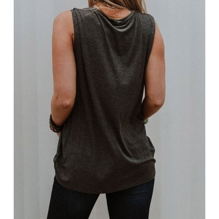 Top de tirantes anchos para mujer con escote redondo. Corte recto y suelto. Estampado colorido con texto en la parte delantera.