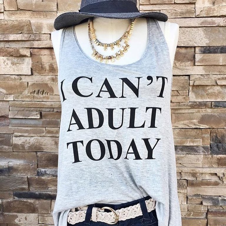 Top de tirantes para mujer con escote redondo. Corte recto y suelto. Impresión negra con texto en la parte delantera.
