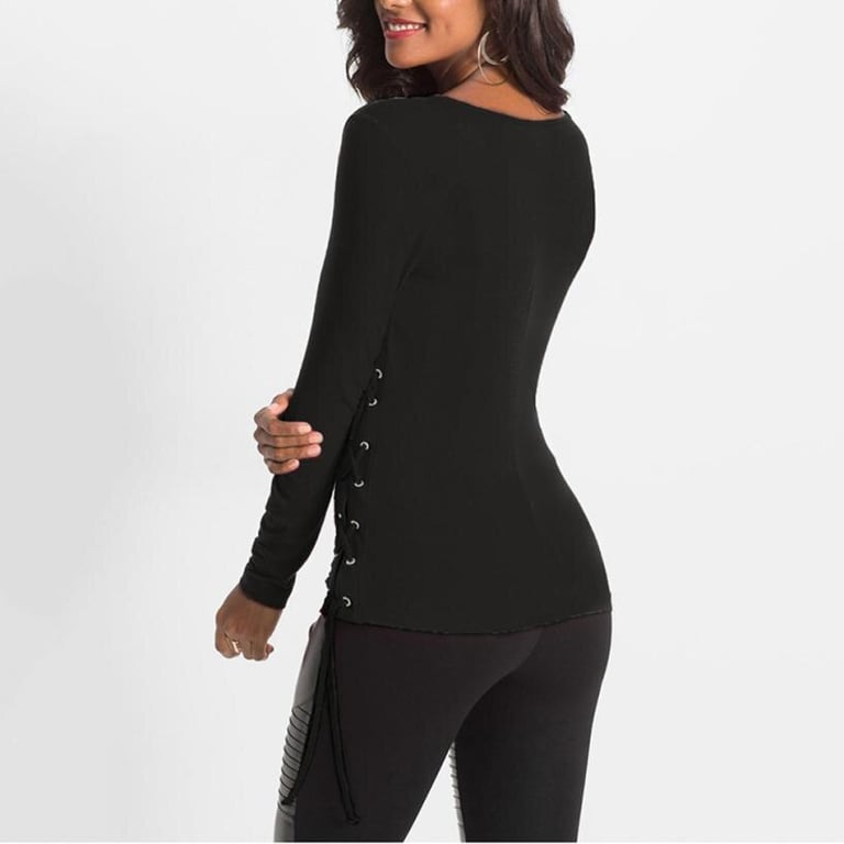 Top de mujer de manga larga Bella con un lazo decorativo en el lado.