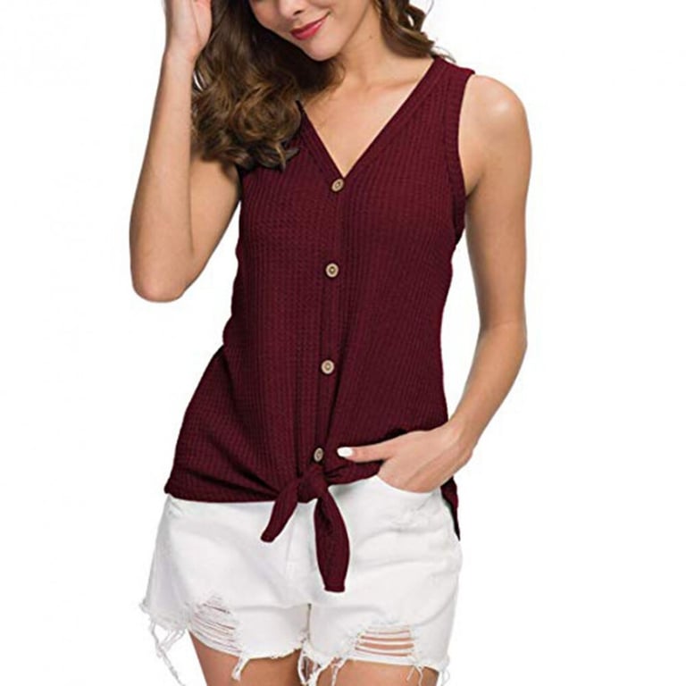 Top de tirantes para mujer con tirantes anchos y escote con botones. Corte holgado. Nudo de atar. Disponible en varios colores.