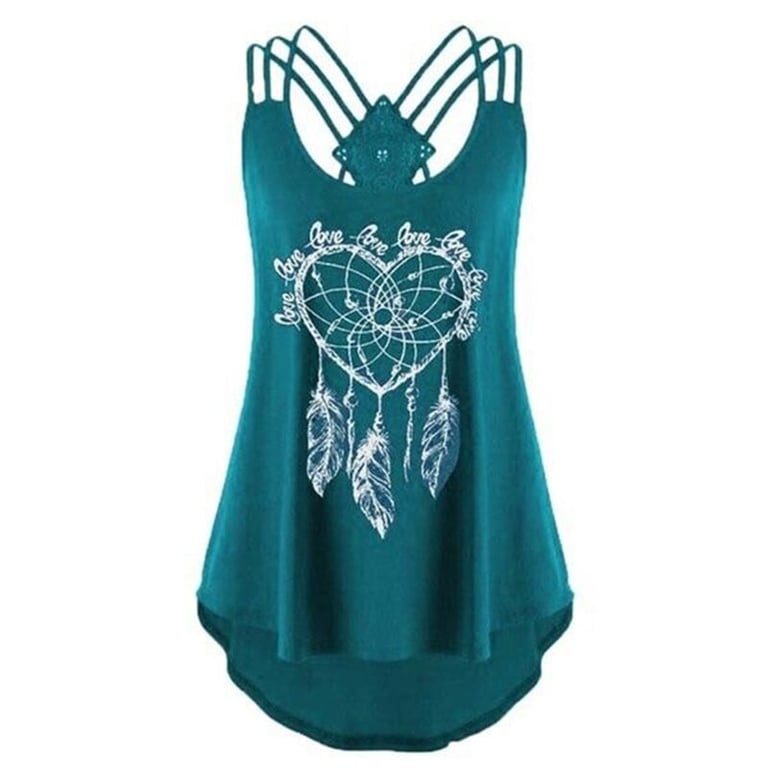 Top de mujer con tirantes finos cruzados en la espalda. Corte asimétrico suelto con estampado en la parte delantera. Varias opciones de color.