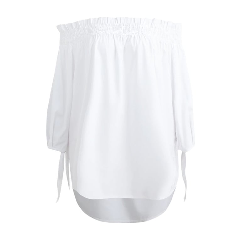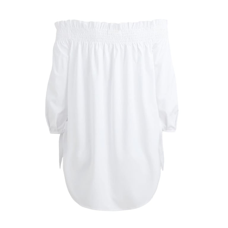 Top elegante con hombros descubiertos y escote. Adecuado como prenda de tallas grandes o para embarazadas.