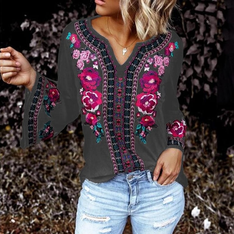 Camisa atractiva para mujer con un motivo colorido para un atuendo otoñal con estilo.