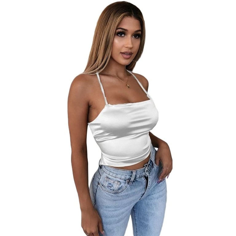 Top sexy de satén para mujer con cordones en la espalda Tenley
