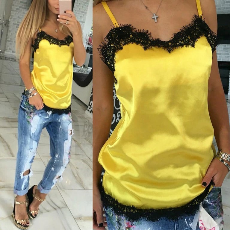 Top de tirantes brillante para mujer Sombrita - amarillo