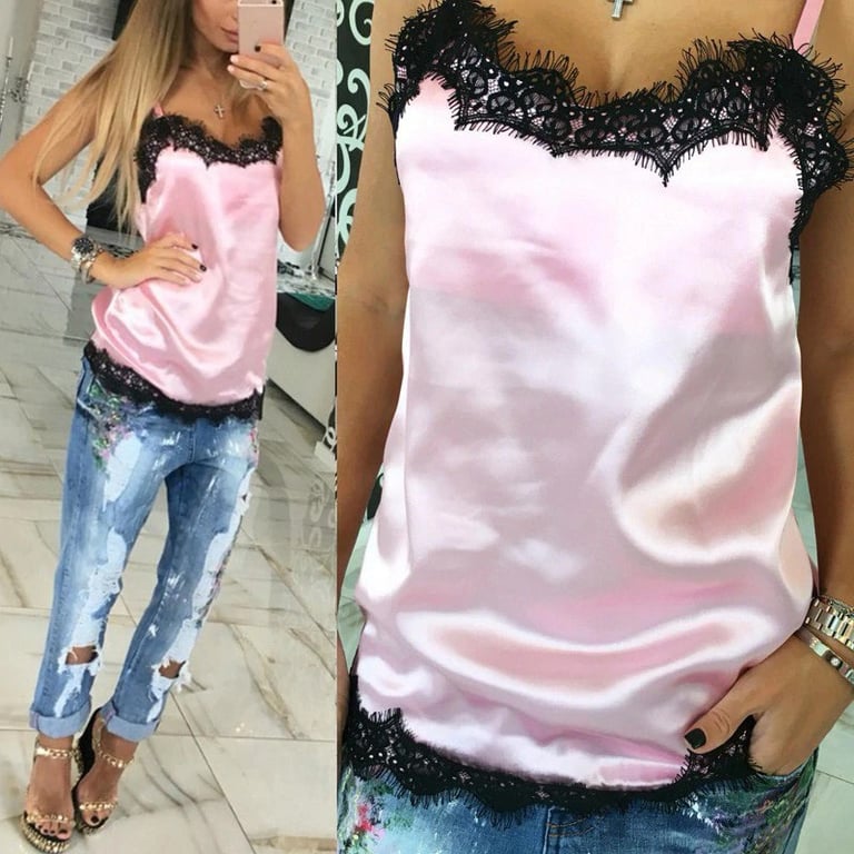 Top de tirantes brillante para mujer Sombrita - rosa