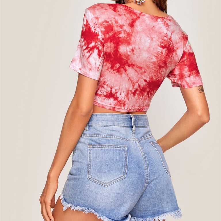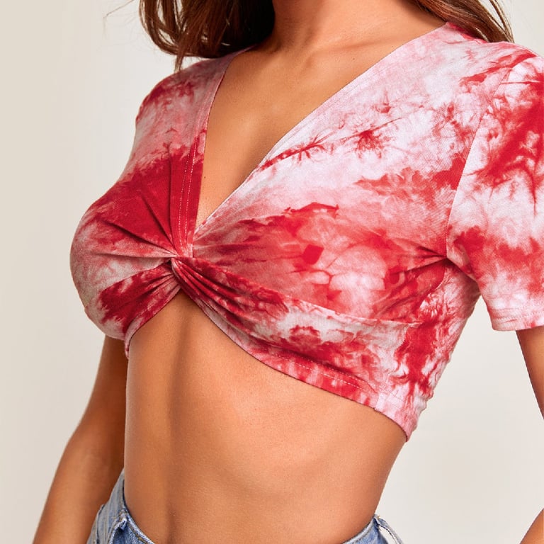 • Perfecto top de verano para mujer con corte corto y patrón teñido.
