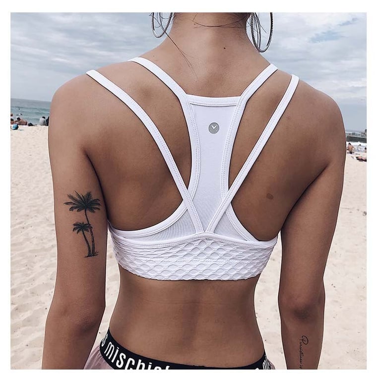 Top deportivo corto para mujer con una capa inferior cosida. Tirantes delgados con cruce en la espalda. Material elástico. Disponible en varias opciones de color.