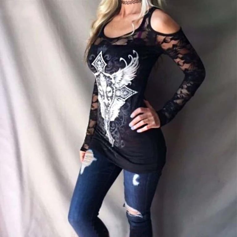 ¡Top estiloso con mangas de encaje, con el que harás mucho alarde! Es adecuado tanto para el uso diario como para conciertos, celebraciones u otros eventos.