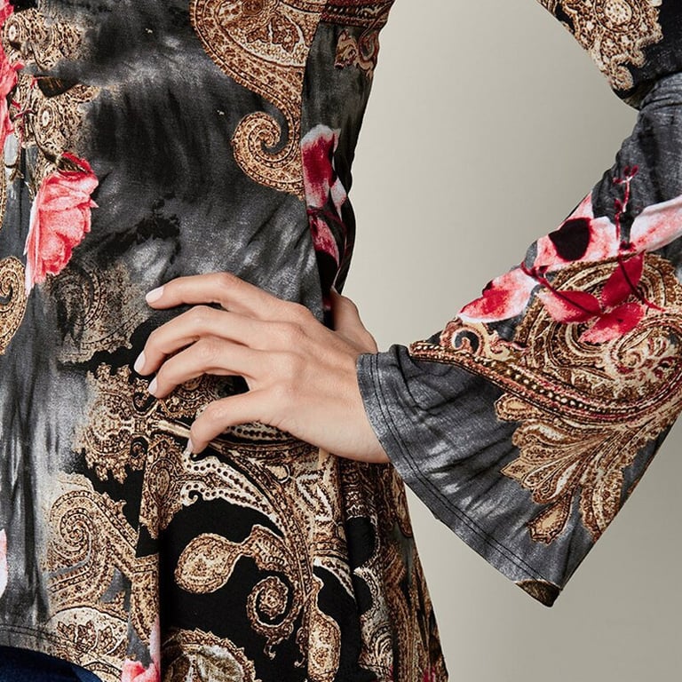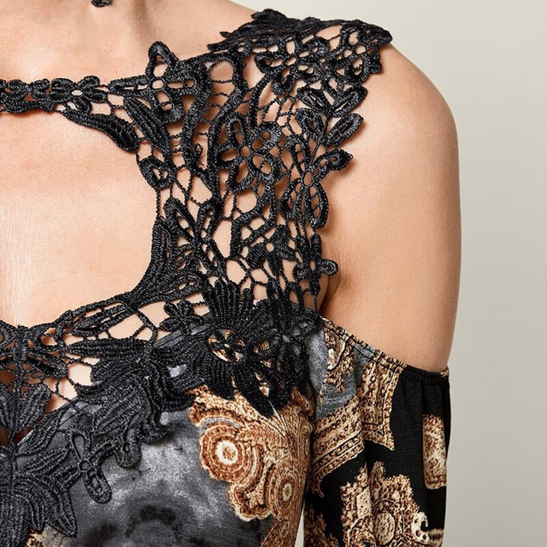 Top muy elegante con un corte inusual y un decorado original. Completa tu armario.