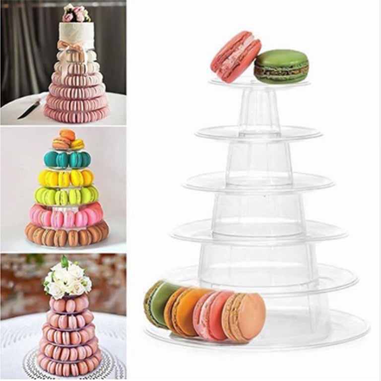 Soporte para pasteles o tartas. Transparente. Disponible en dos variantes: 4 niveles o 6 niveles.