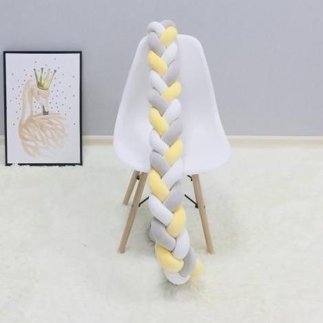 Trenza de punto estilosa que puedes colocar en la cuna para mayor comodidad del bebé.