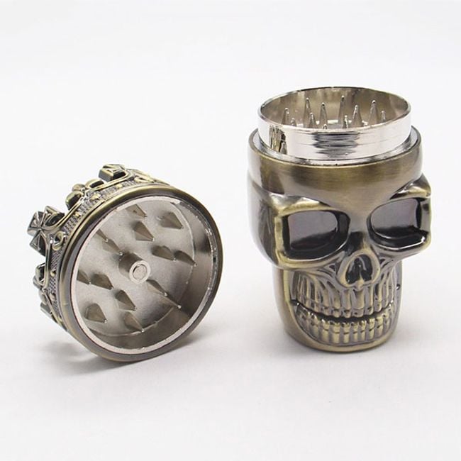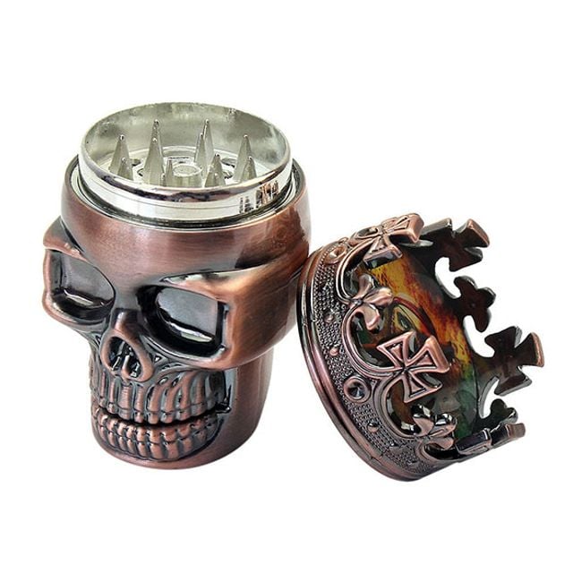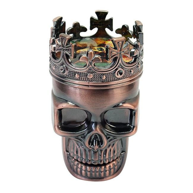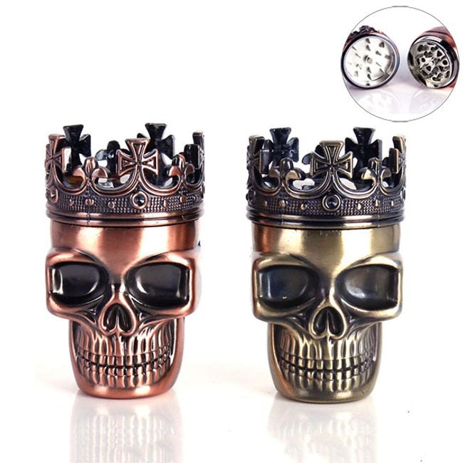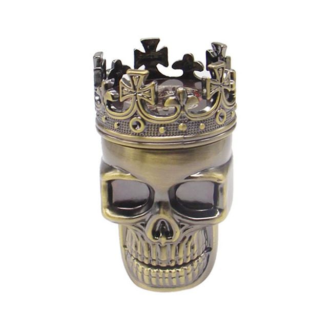 Triturador de tabaco y hierbas en forma de calavera con corona.