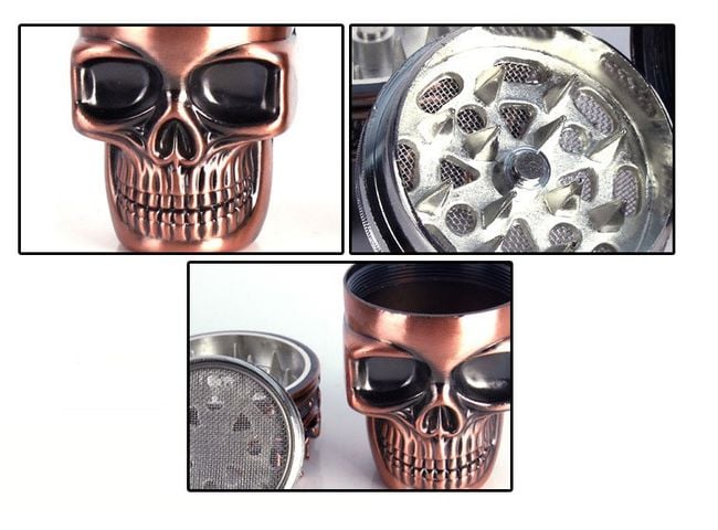 Interesante triturador de hierbas secas o tabaco. Se trata de un cráneo con una corona. La corona se puede quitar y llenar el cráneo con material. Gracias a la malla y al compartimento en la parte inferior, también se asegura la separación de las partes más finas y su captura. Hay dos variantes de color disponibles.