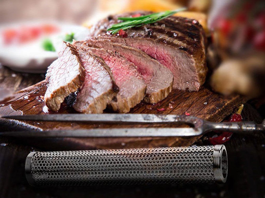 En el tubo de acero inoxidable, vierta astillas de madera y así creará un aroma ahumado en los alimentos a la parrilla, desde carne hasta verduras. Transformará su parrilla en un ahumador y enriquecerá el sabor de los platos durante la cocción!