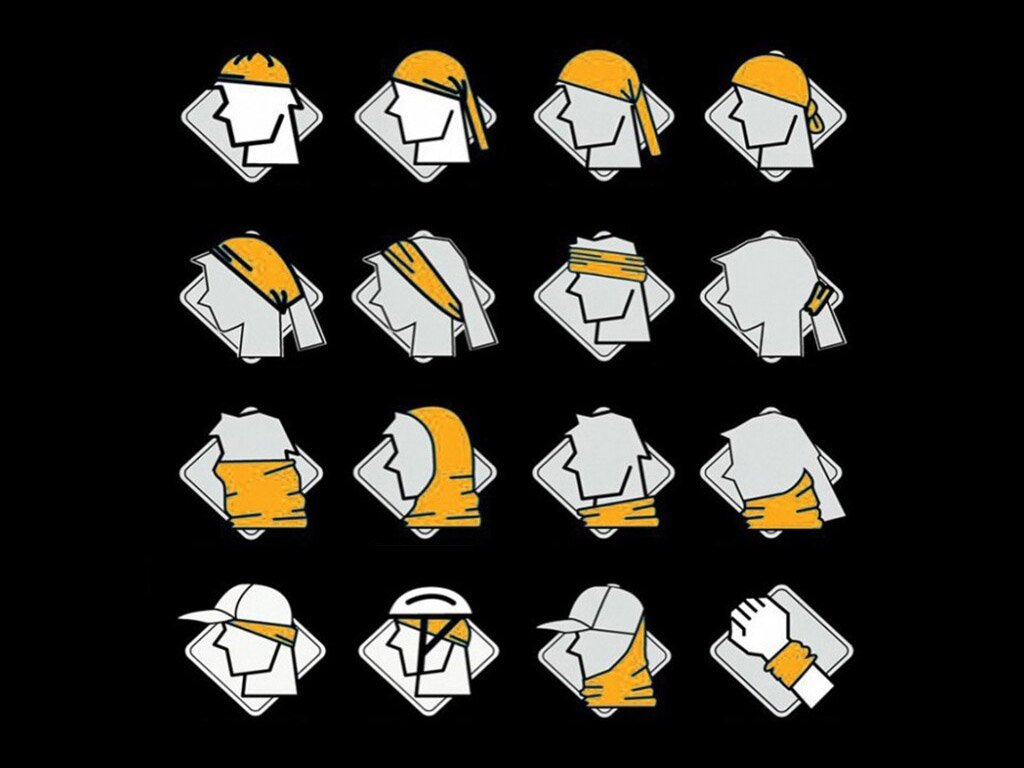 El pañuelo multifuncional se puede usar como: pañuelo, diadema, bufanda para el cuello, máscara facial, gorro, pasamontañas, vendaje.
