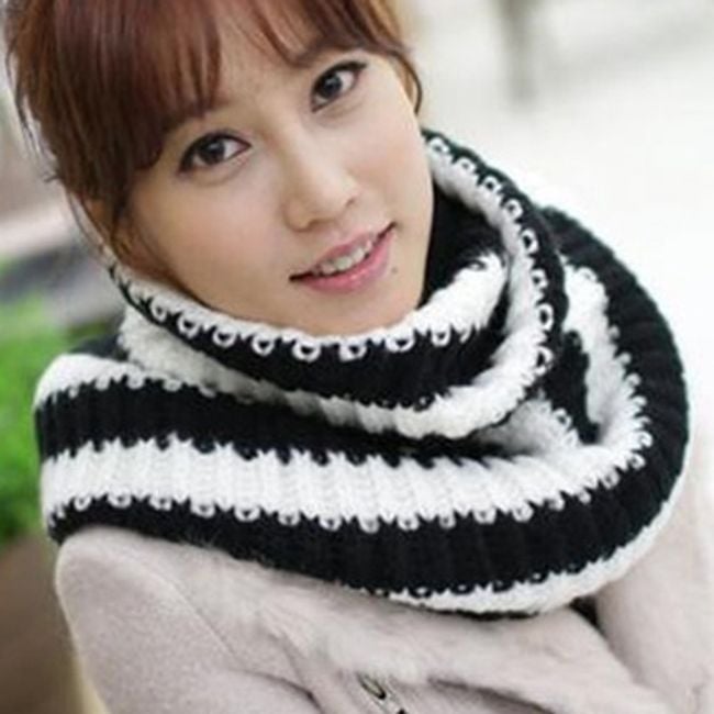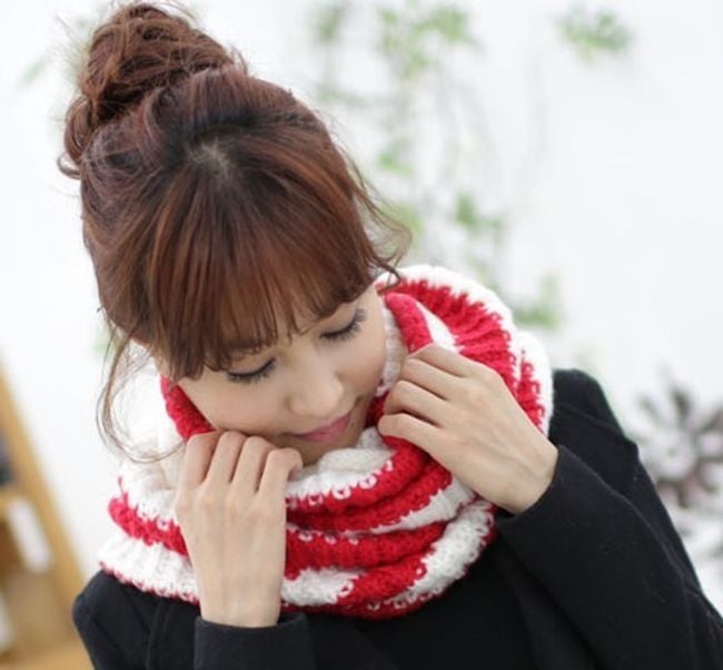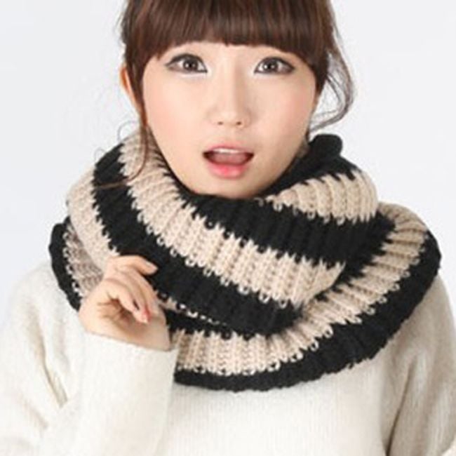 Envuélvete en un moderno tubo de punto que reemplaza a la bufanda. Te mantendrá caliente y se ve genial. Puedes elegir entre varias combinaciones de colores.