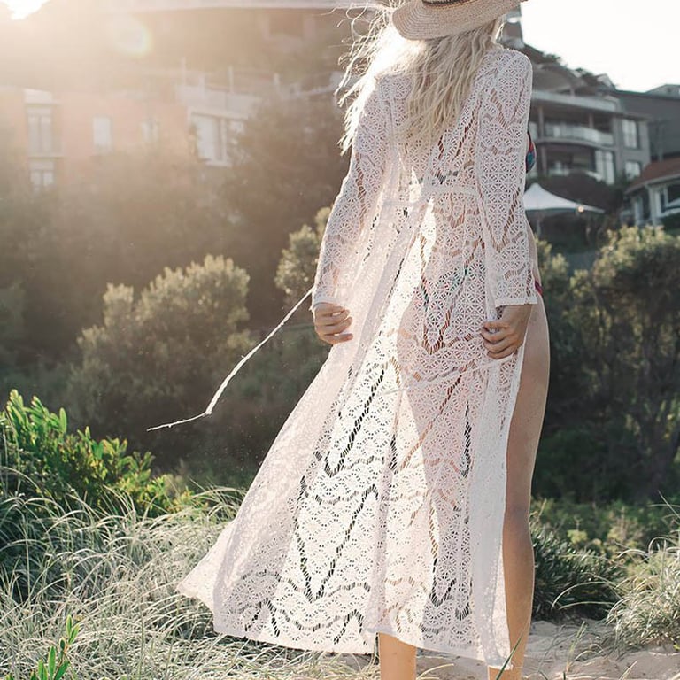 Túnica de encaje sobre el traje de baño Mancheta – blanca