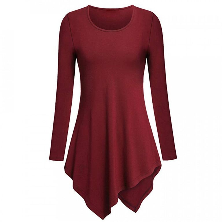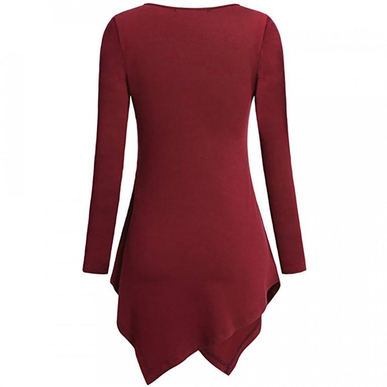Túnica de mujer con mangas largas y escote redondo. Corte asimétrico más largo con volantes. Disponible en dos variantes de color.