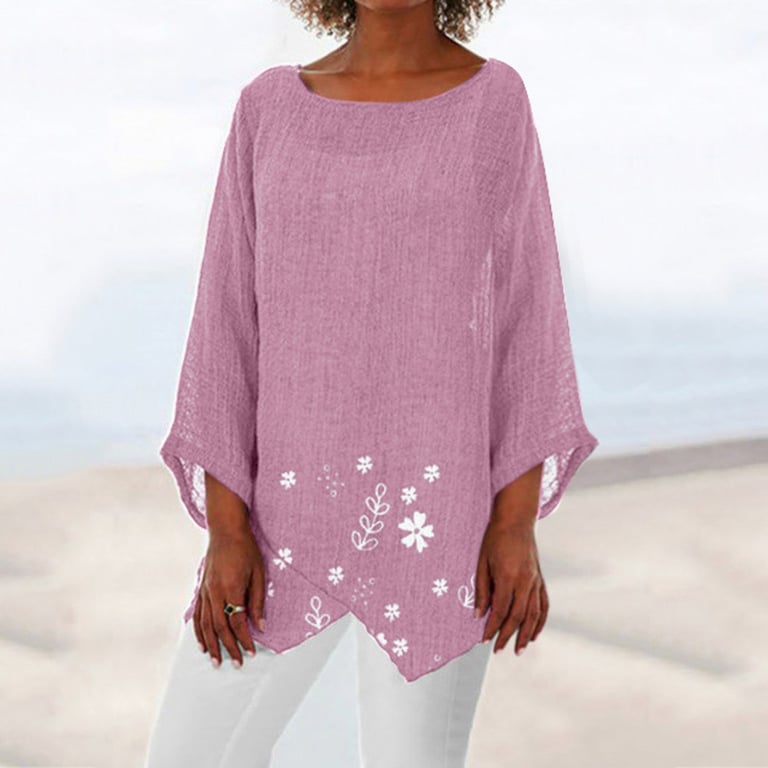 Blusa tunicada para mujer con mangas 3/4 y escote redondo. Corte suelto y más largo. Estampado con motivo floral. Disponible en varios colores.