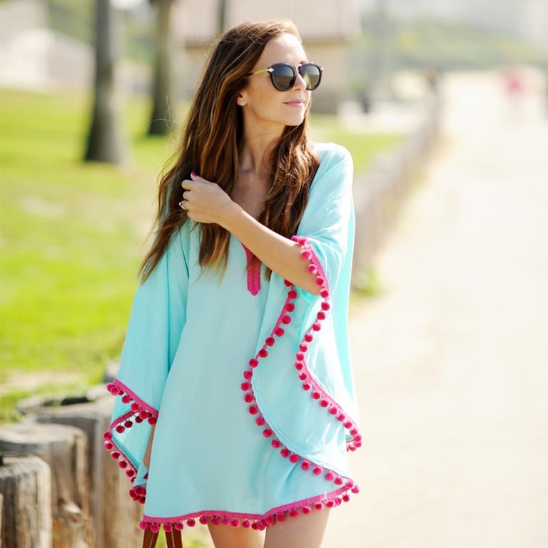 Túnica de playa con pompones Elvíra – turquesa