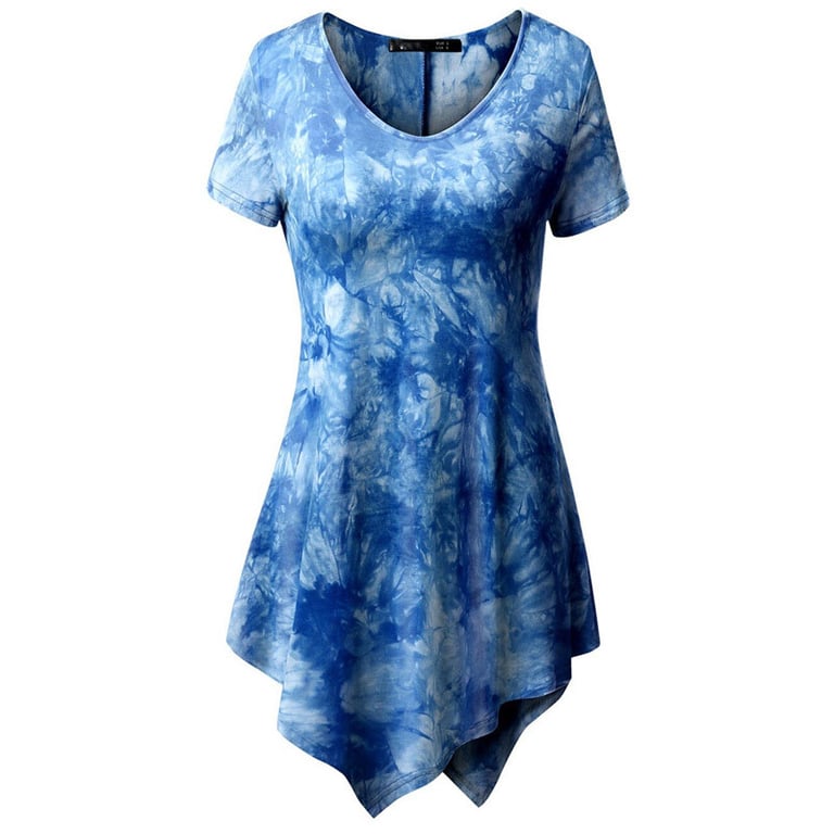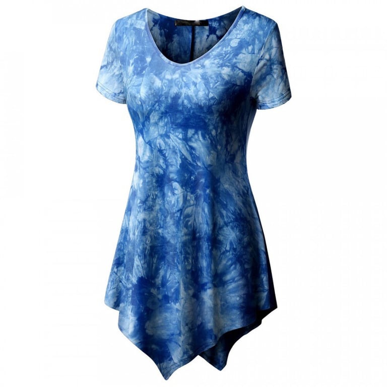 Túnica de mujer con mangas cortas y escote redondo. Estampado con un patrón abstracto colorido. Disponible en varias opciones de color.