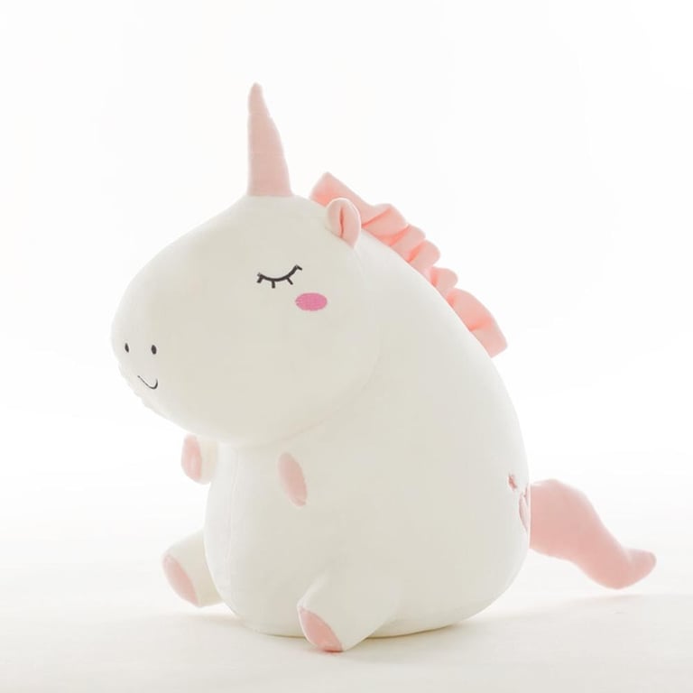 Un adorable unicornio de peluche de 25 cm en dos posibles variantes de color.