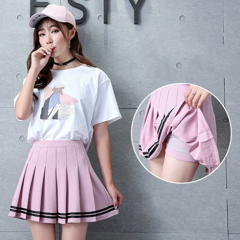 Falda plisada para mujer con pantalones cortos. Falda plisada para mujer con pantalones cortos