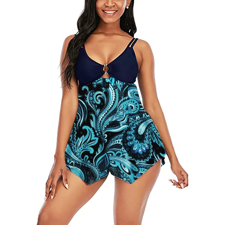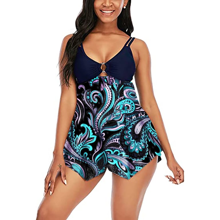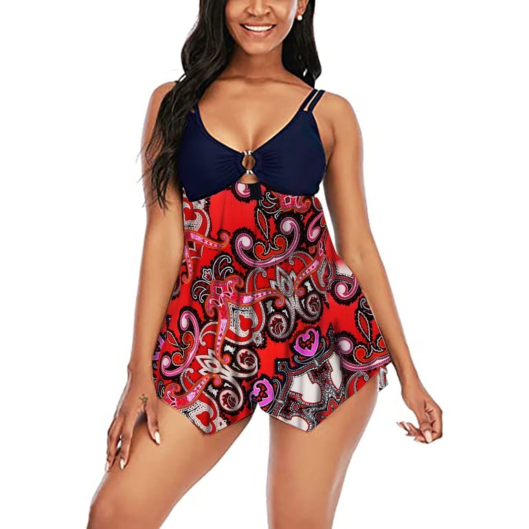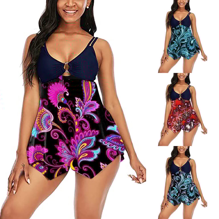 VelvetRays™ Tankinis de flores para mujer con escote profundo