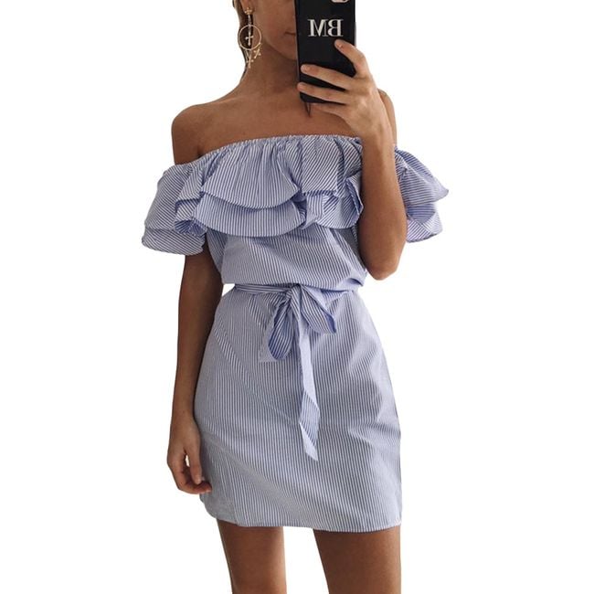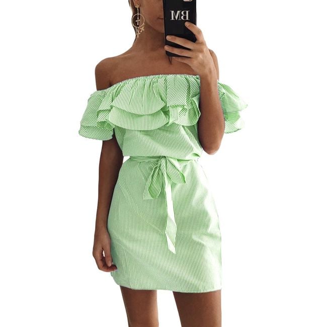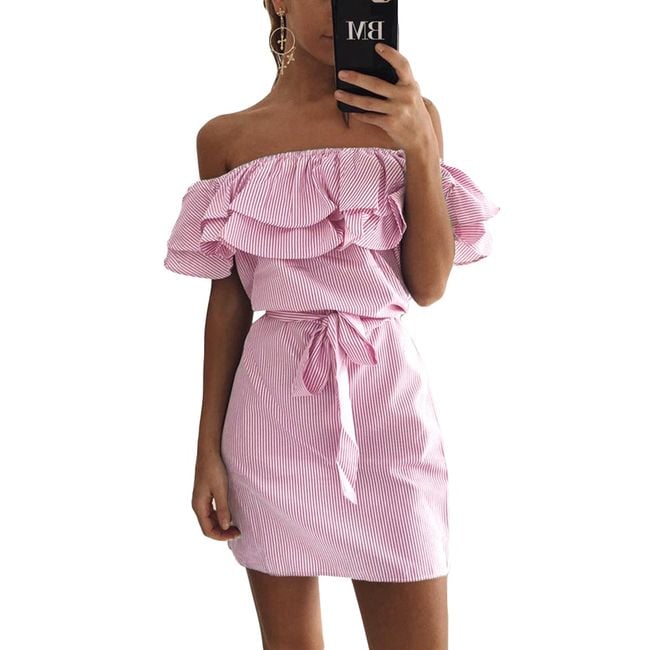 Hermoso y elegante vestido que llega a nuestra oferta, se destacará en cualquier armario. Tiene un cinturón en la cintura y en la parte superior está adornado con volantes, que es una tendencia muy de moda. Puedes elegir entre tres hermosos colores. La tabla de medidas se encuentra en la parte inferior de la página.