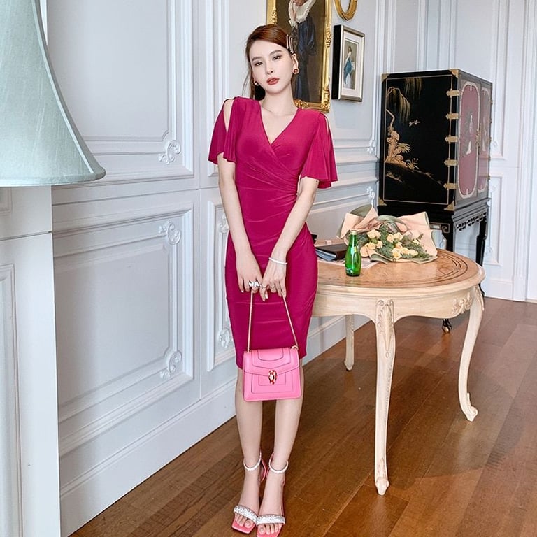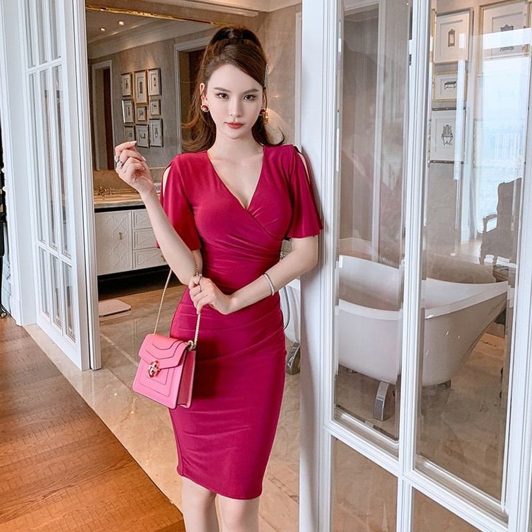 Vestido ajustado y elegante para mujer con escote cruzado Shawnda