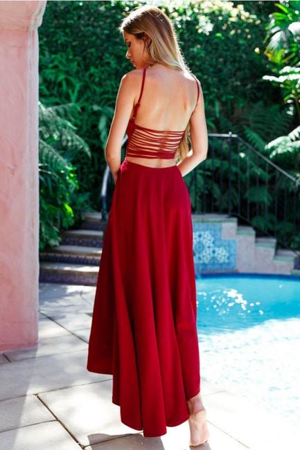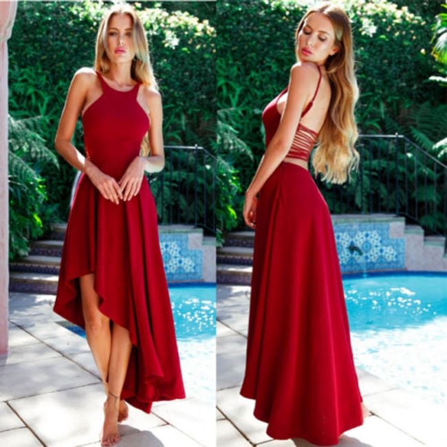 Elegante vestido de mujer con falda asimétrica y espalda descubierta. Puedes elegir entre dos variantes de color.