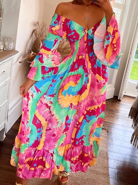 Vestido boho de verano para mujer con estampado de moda.