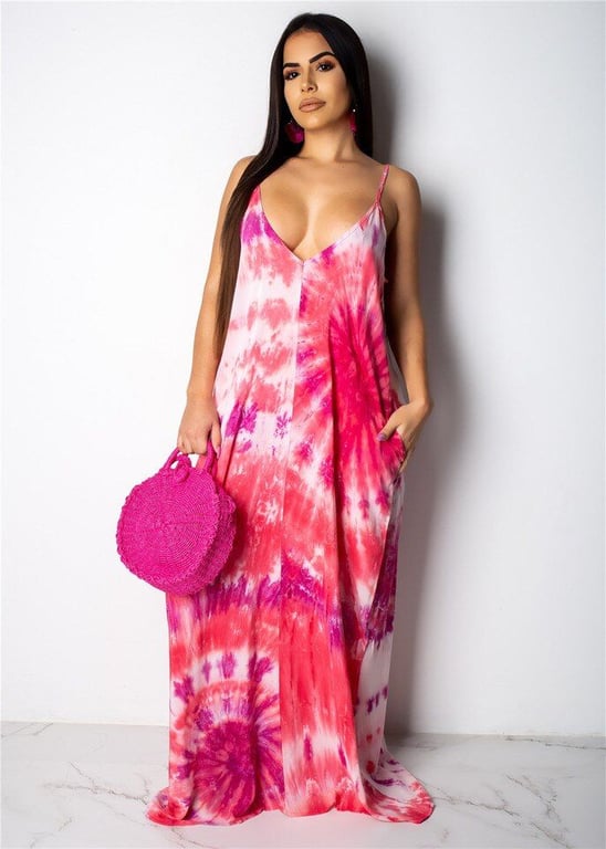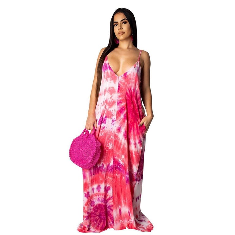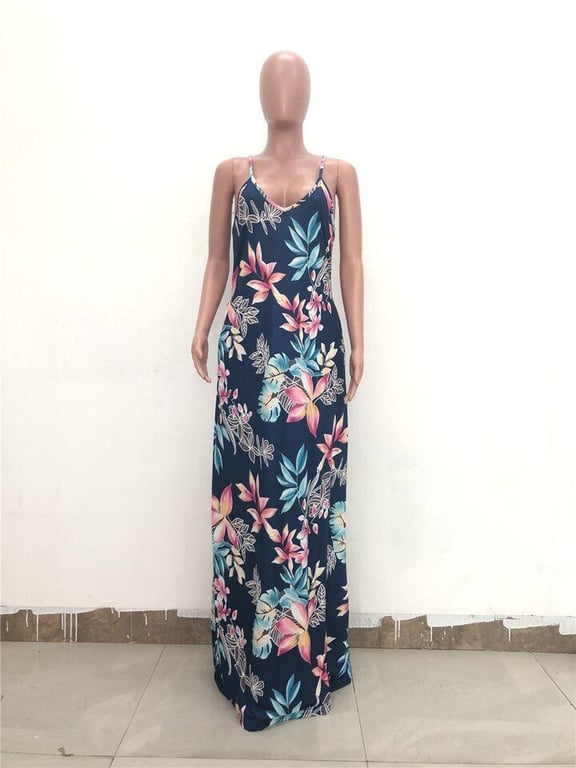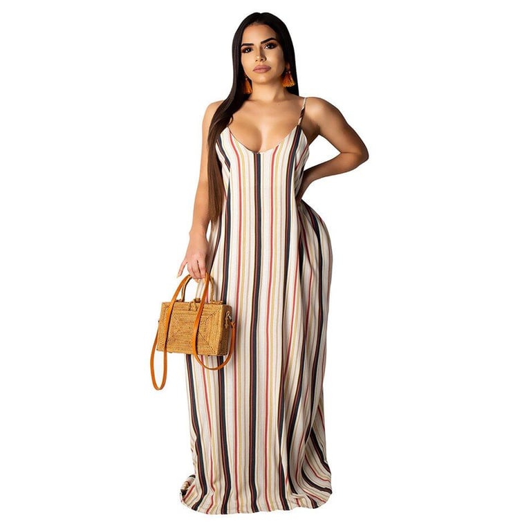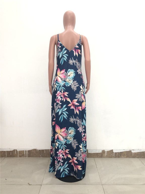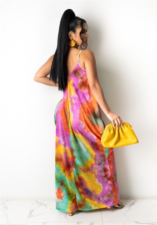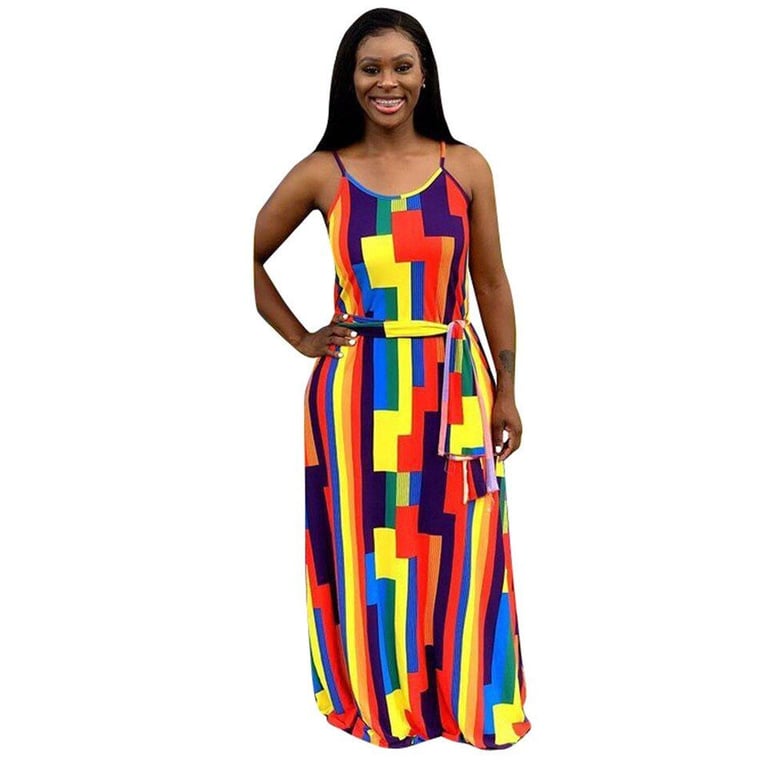 Vestido maxi de mujer a la moda con motivos coloridos.