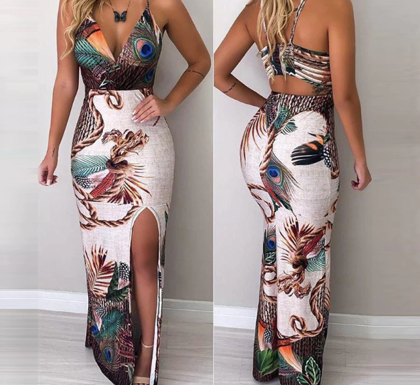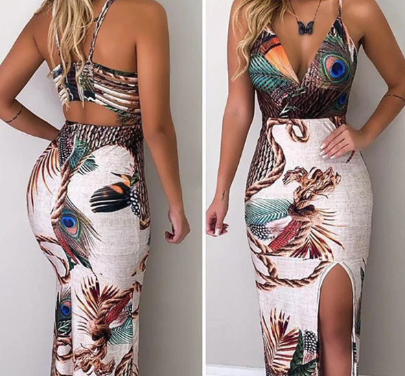 Vestido con estampado de pavo real
