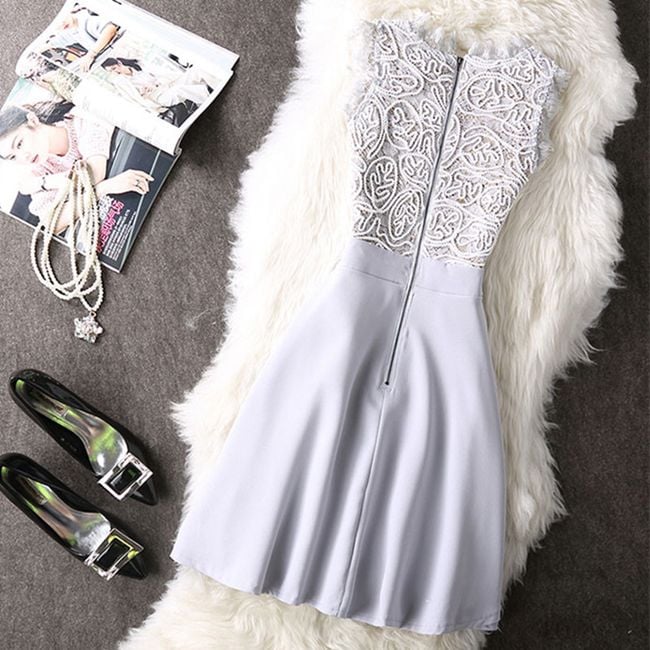 El vestido corto con encaje es ideal no solo para los días de verano, sino que también es muy adecuado para diversos eventos sociales. El cierre se encuentra en la parte posterior. Tienes dos colores y varias tallas para elegir.