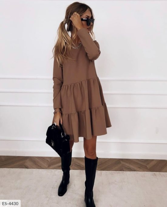 Etiquetas: vestido con volantes, vestido de mujer, vestido con mangas largas, básico, falda suelta, falda plisada