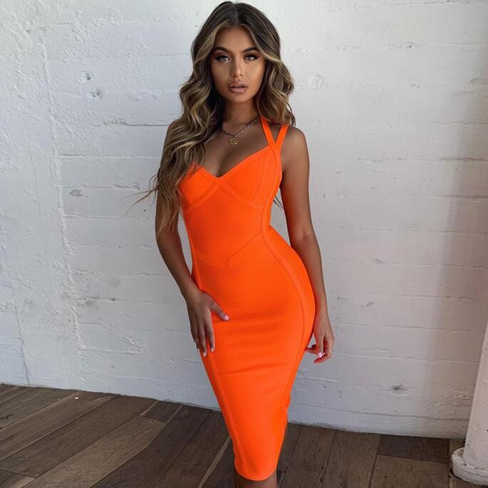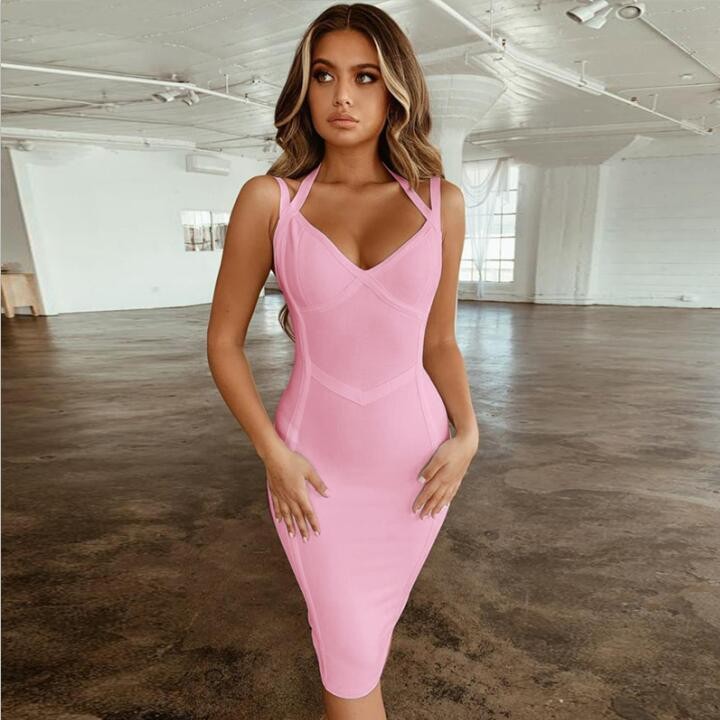 Vestido midi sexy para mujer en un moderno estilo de banda.