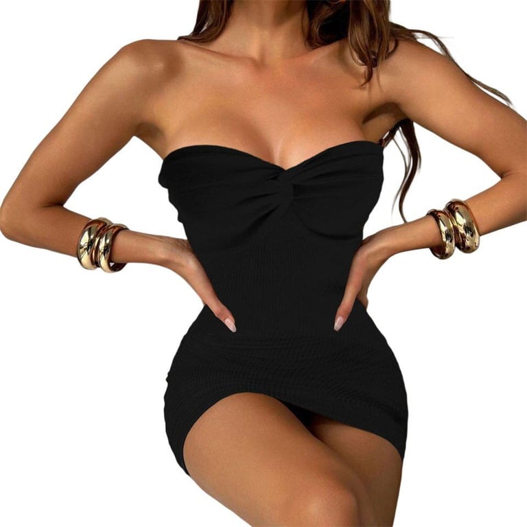 Vestido femenino estiloso y a la vez sencillo con un nudo en el escote.