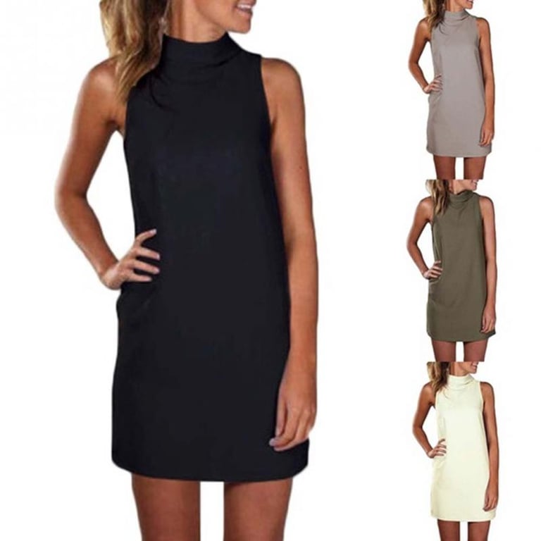 Vestido de cóctel sencillo con cuello y sin mangas.