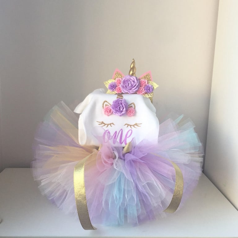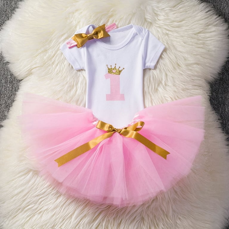 Vestido de cumpleaños para niña con falda de tul y diadema